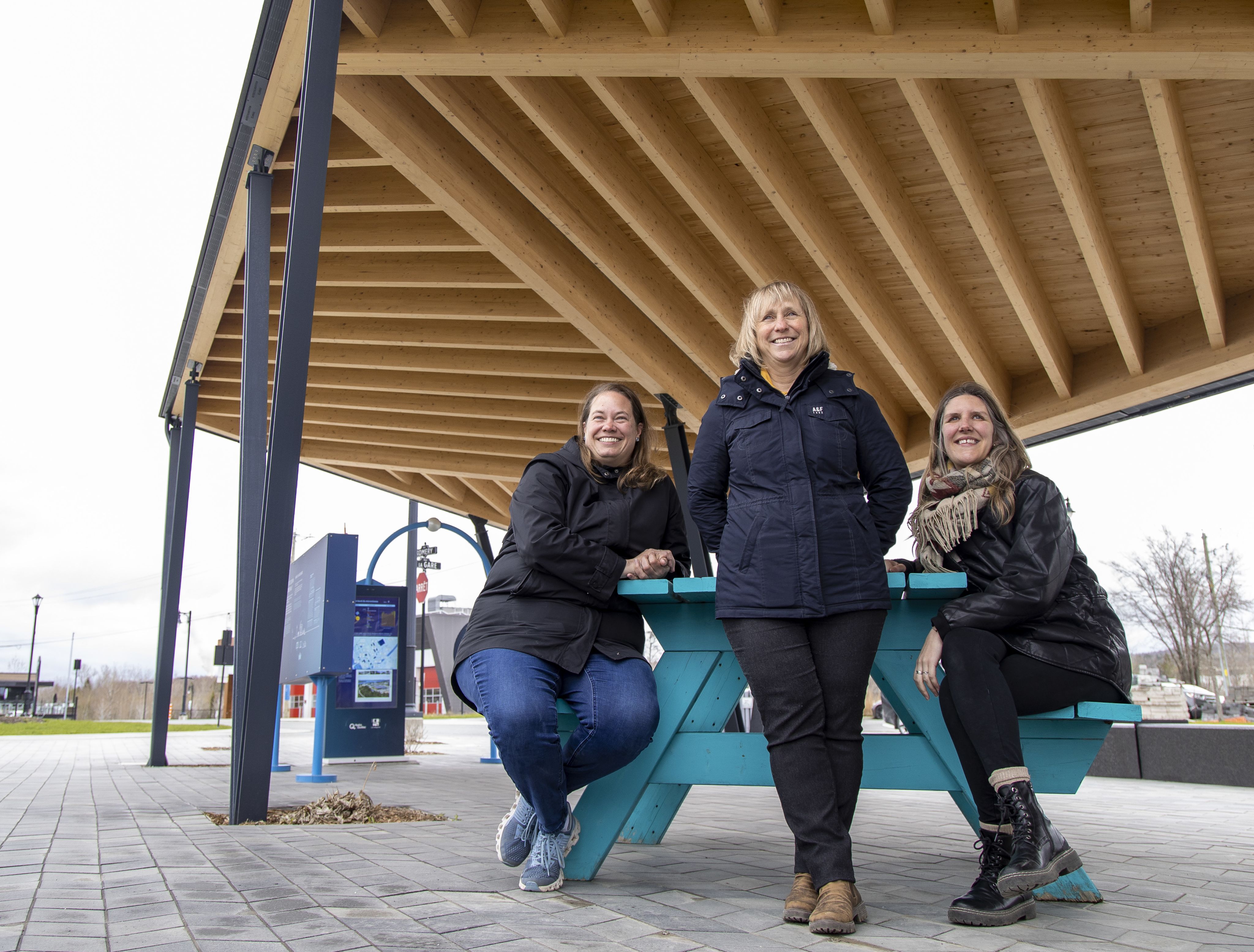 Assises autour d’une table en entrevue, trois des quatre travailleuses de l’équipe de proximité de Lac-Mégantic racontent en rafale leur vision de « la place éphémère », ce parc rassembleur du Lac-Mégantic de 2023.